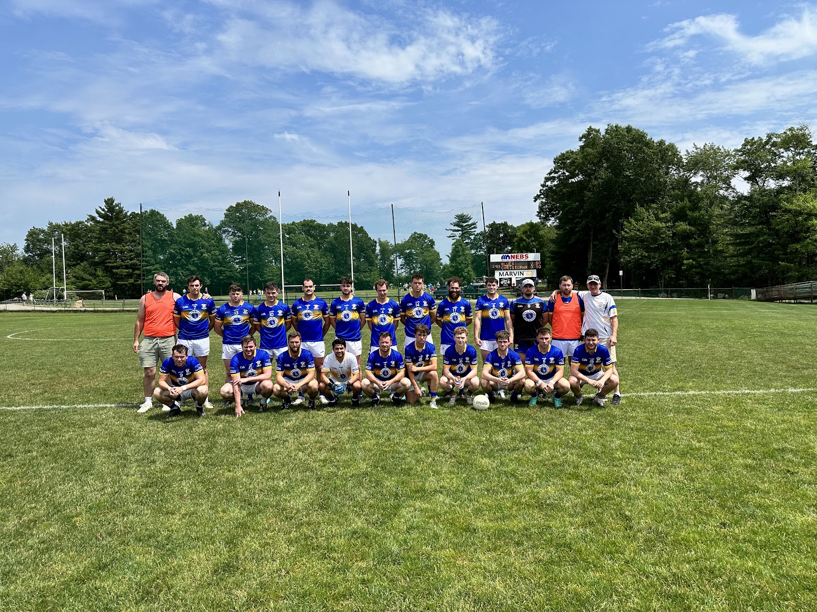 Eoin Sawyer used his speed to respond immediately with a solo run down the right wing and finished with a fisted point. A breaking ball dropped to McSweeney then who hit it soccer style on the half volley but it was well saved by Nik Albarran in the Blues net. Patrick McDonnell kicked a lovely point from the resulting 45.